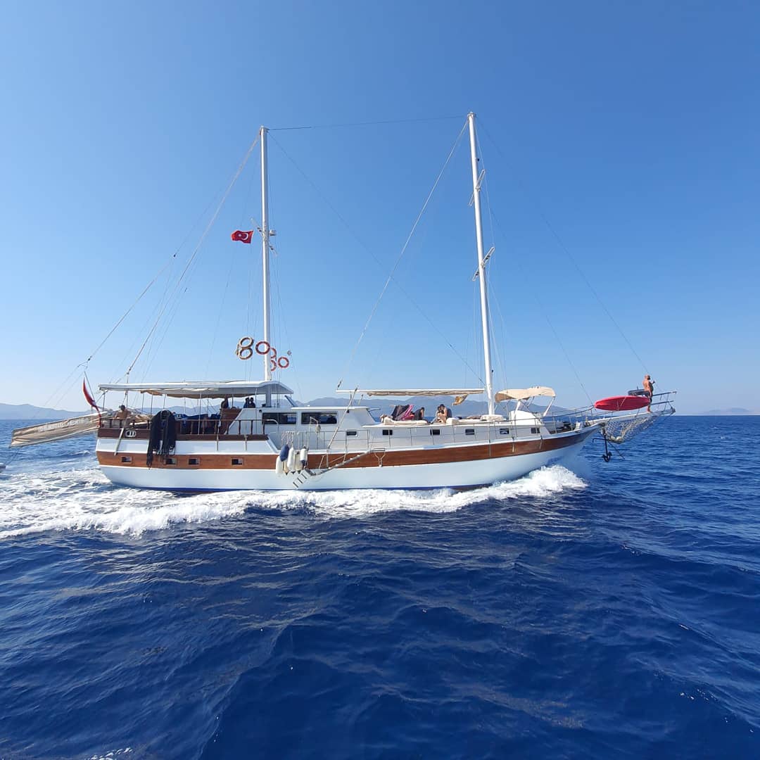 1. Gün: Misafirlerin tekneye gelişiyle birlikte 16:00' da limandan ayrılıyoruz.  Zeytin ada ya demirleyip akşam yemeği ve gecelemeyi burada yapıyoruz.